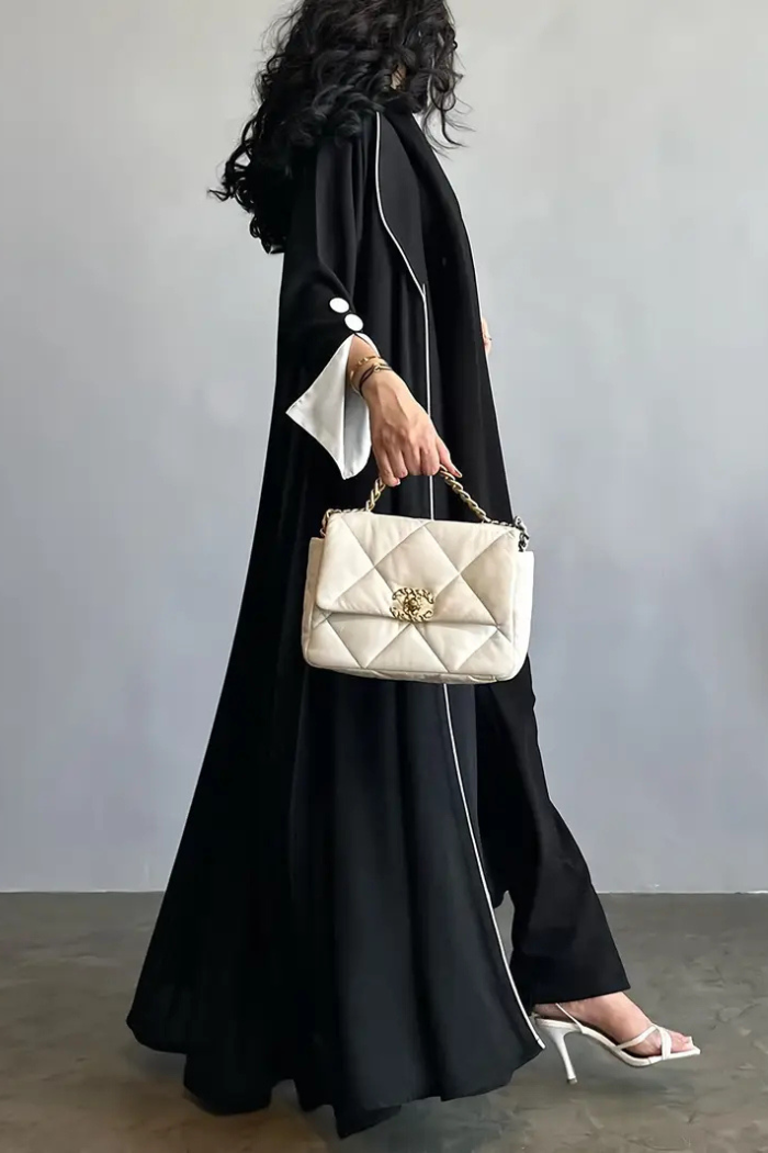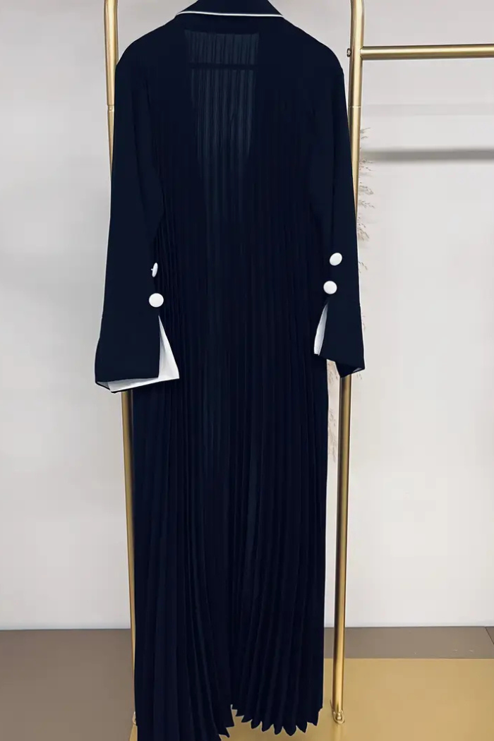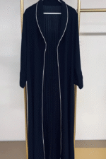 Fresh, refined, and effortlessly graceful — the Veloura Navy Bloom Abaya is your go-to choice for spring and summer elegance. Featuring a rich navy blue tone with crisp white trim, this pleated design flows beautifully with every step. Long sleeves and lightweight, nontransparent fabric offer comfort and coverage for casual outings, festive gatherings, or special occasions. Modesty meets modern charm in this breezy abaya dress.